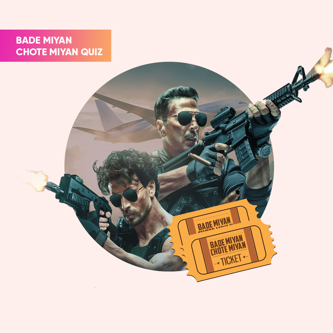 know moreNote: Questions are based on Akshay Kumar and Tiger Shroff. - The winner will get 2 Movie Tickets for "BADE MIYAN CHOTE MIYAN, " available on BookMyShow / Insider. - Winner can choose any nearby movie theatre of their choice - The total cost for both tickets should not exceed Rs 1000. (Incl of all taxes) - Tickets are subject to availability.