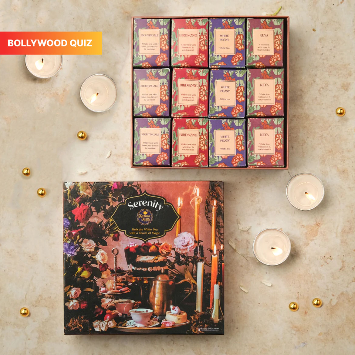 know moreNote: A minimum of 46 tickets must be sold to announce the winners. If this requirement is not met before the deadline, the ticket amount will be refunded to your Quizkart wallet. Enjoy the goodness of exquisite white teas expertly curated for tea connoisseurs. It is packed in a beautiful box and serves as a premium and healthy gift option. IN THE BOX: - Nightingale - Silver tips white tea with blue butterfly pea flower and jasmine - 3 pyramid teabags - Keya - Silver tips white tea with rose, strawberries and fennel - 3 pyramid teabags - Birdsong - Silver tips white tea with lavender and cockscomb - 3 pyramid teabags - White Peony - White tea - 3 pyramid teabags
